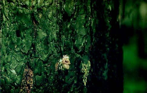 Молодые жуки начинают отрождаться в первые два летних месяца, они делают в коре летные отверстия округлой формы, а затем улетают в кроны ближних деревьев (там они находят дополнительное питание). Прогрызается сердцевина побегов текущего (чаще) или прошлого (реже) года. Итог – обламывание и осыпание побегов, особенно заметно прореживание становится при значительной популяции жуков-вредителей. Осенью лубоеды выходят из кроны, а зимуют в основании стволов живых деревьев.