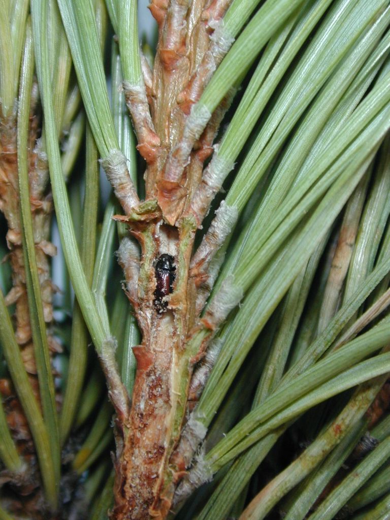 Молодые жучки питаются молодыми побегами, что приводит к обламыванию веточек. Один жук способен уничтожить 5-7 веточек. Здоровые деревья постепенно ослабевают и готовятся к дальнейшим заселениям, поскольку ослабленные деревья насекомые предпочитают здоровым.