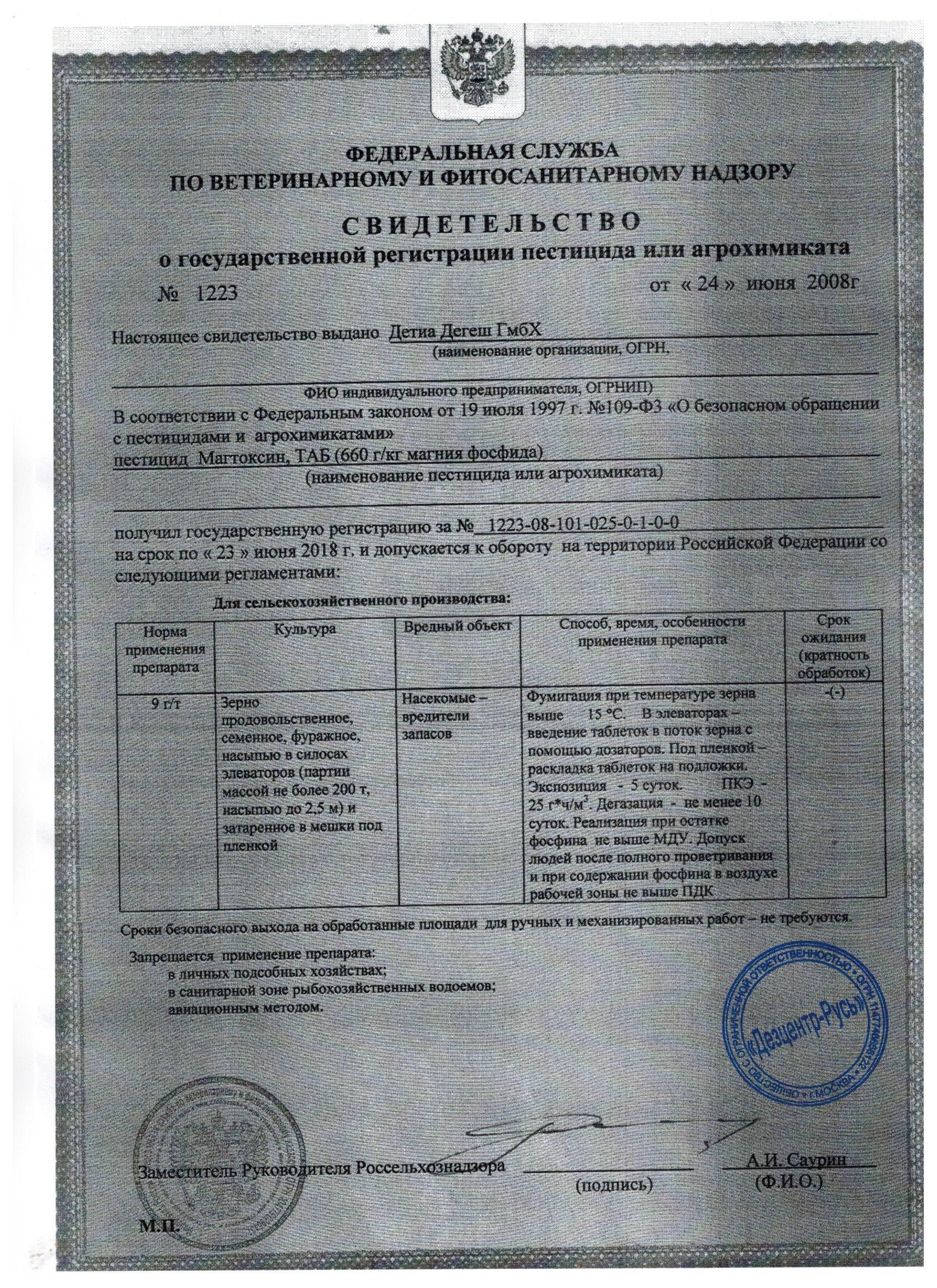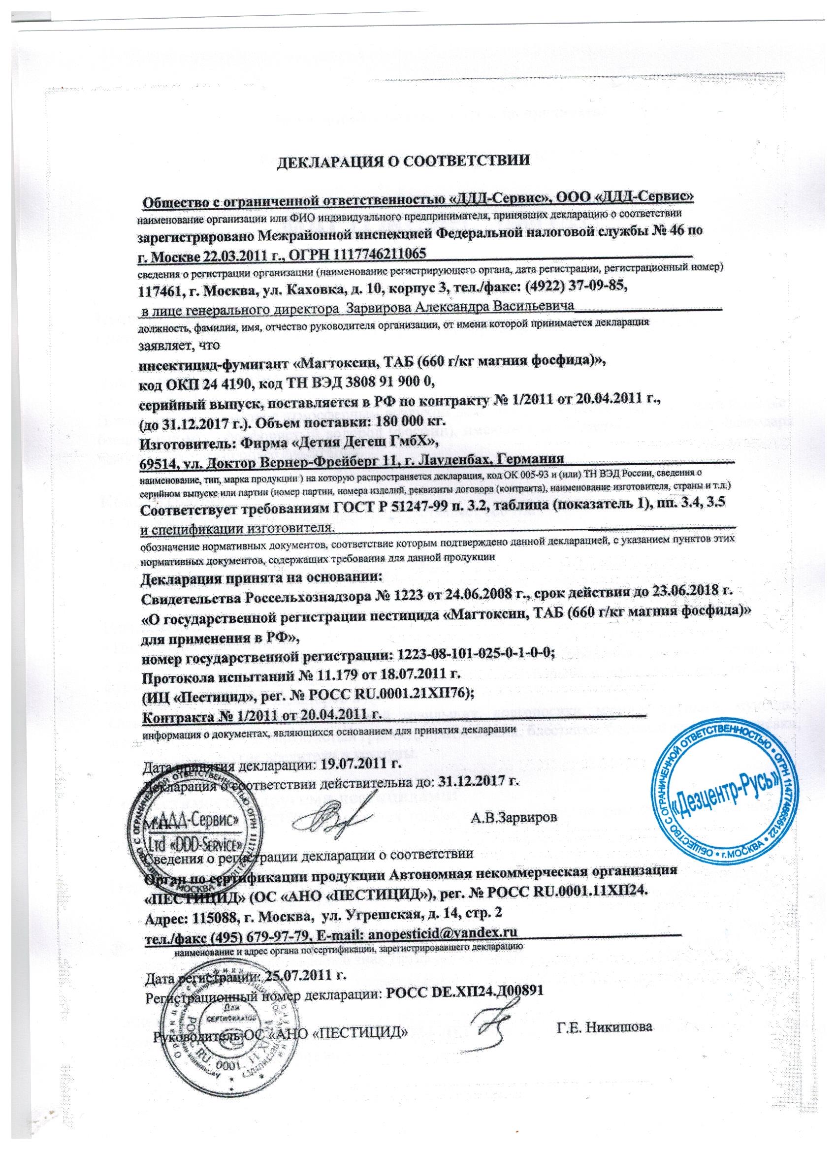 таблетки магтоксина сертификат свидетельство Расход вещества небольшой, поэтому оно вполне экономично.