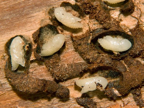 Если пораженный участок большой, нужно воткнуть в поврежденное место нож или шило. Если инструмент входит легко, то повреждения значительные. В этом случае пораженный материал необходимо удалить и сжечь вместе с вредителями. Потом здоровую древесину обработать инсектицидом и антисептиком и в место выемки поместить новый брус. Если древесина достаточно крепкая, но площадь повреждения большая, обработку инсектицидами следует повторить несколько раз.